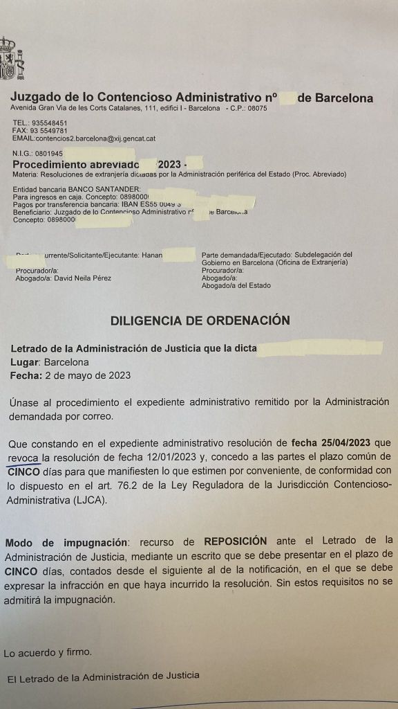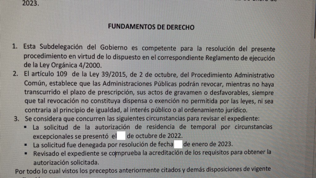 Tras la interposición de la demanda judicial, la subdelegación del Gobierno procedió a revocar la resolución, de conformidad con el art. 109 de la Ley 39/2015 de 2 de octubre del Procedimiento Administrativo Común: