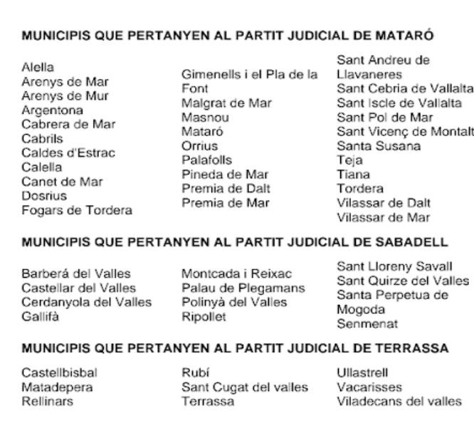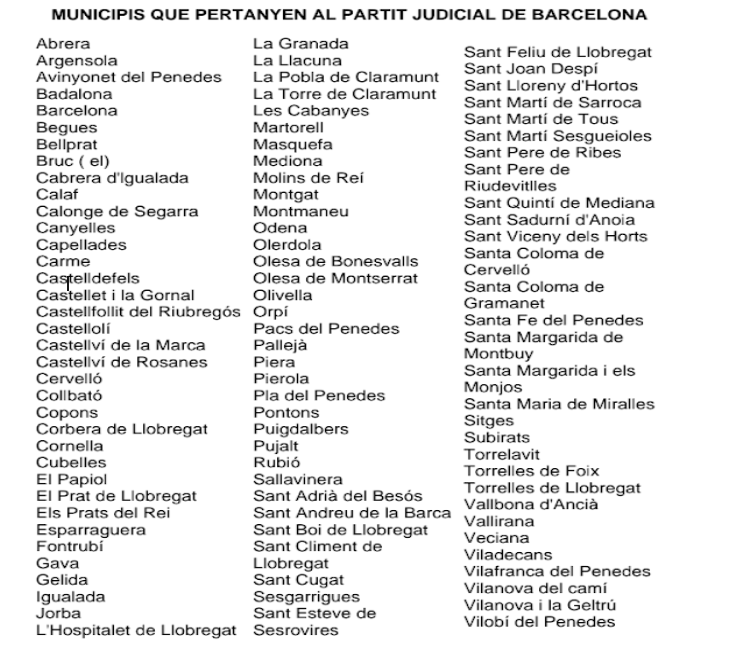 A continuación, les facilitamos un listado de los municipios y partidos judiciales en material laboral pertenecientes a la provincia de Barcelona para que puedan tenerlo en considearción a la hora de presentar una demanda judicial laboral: